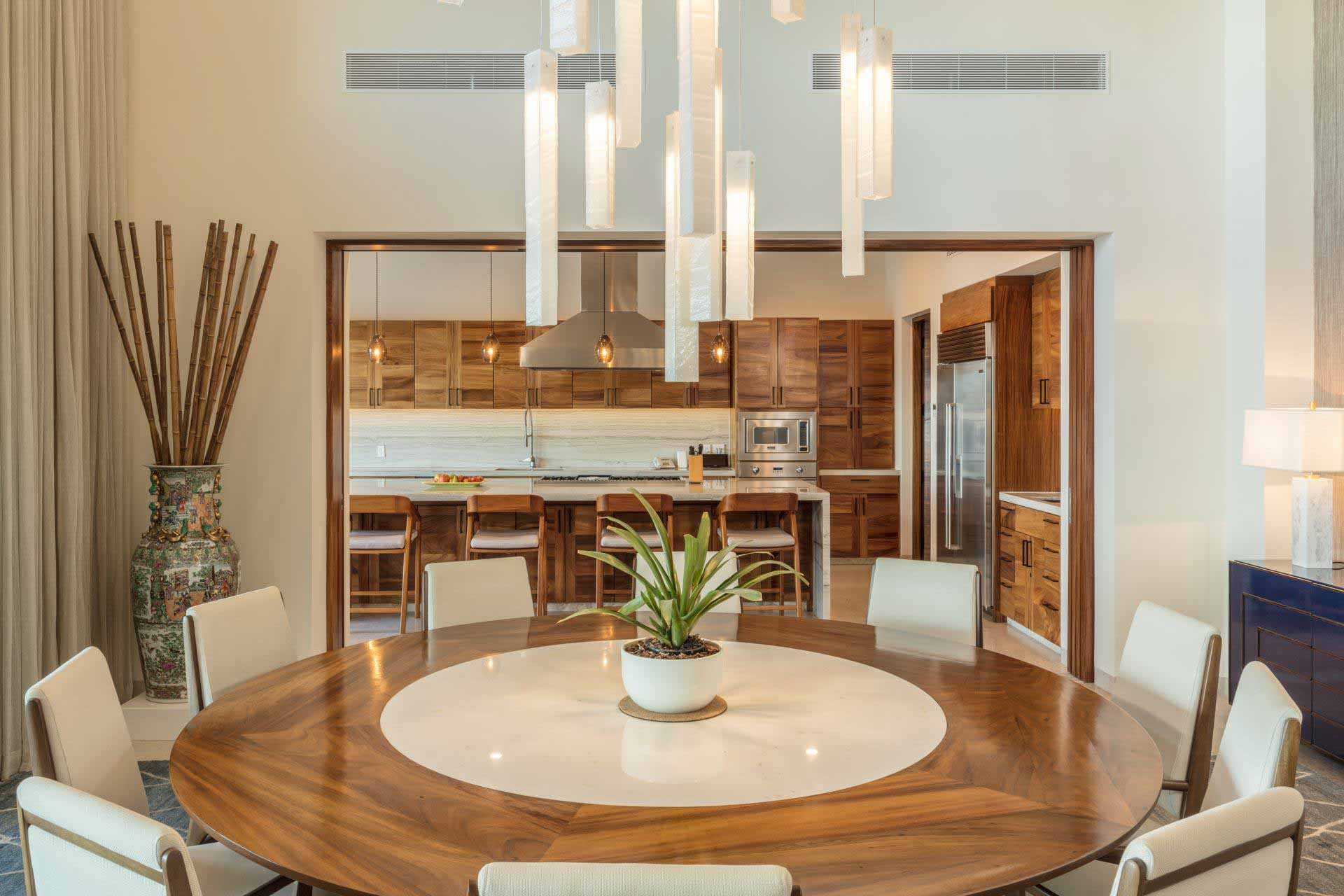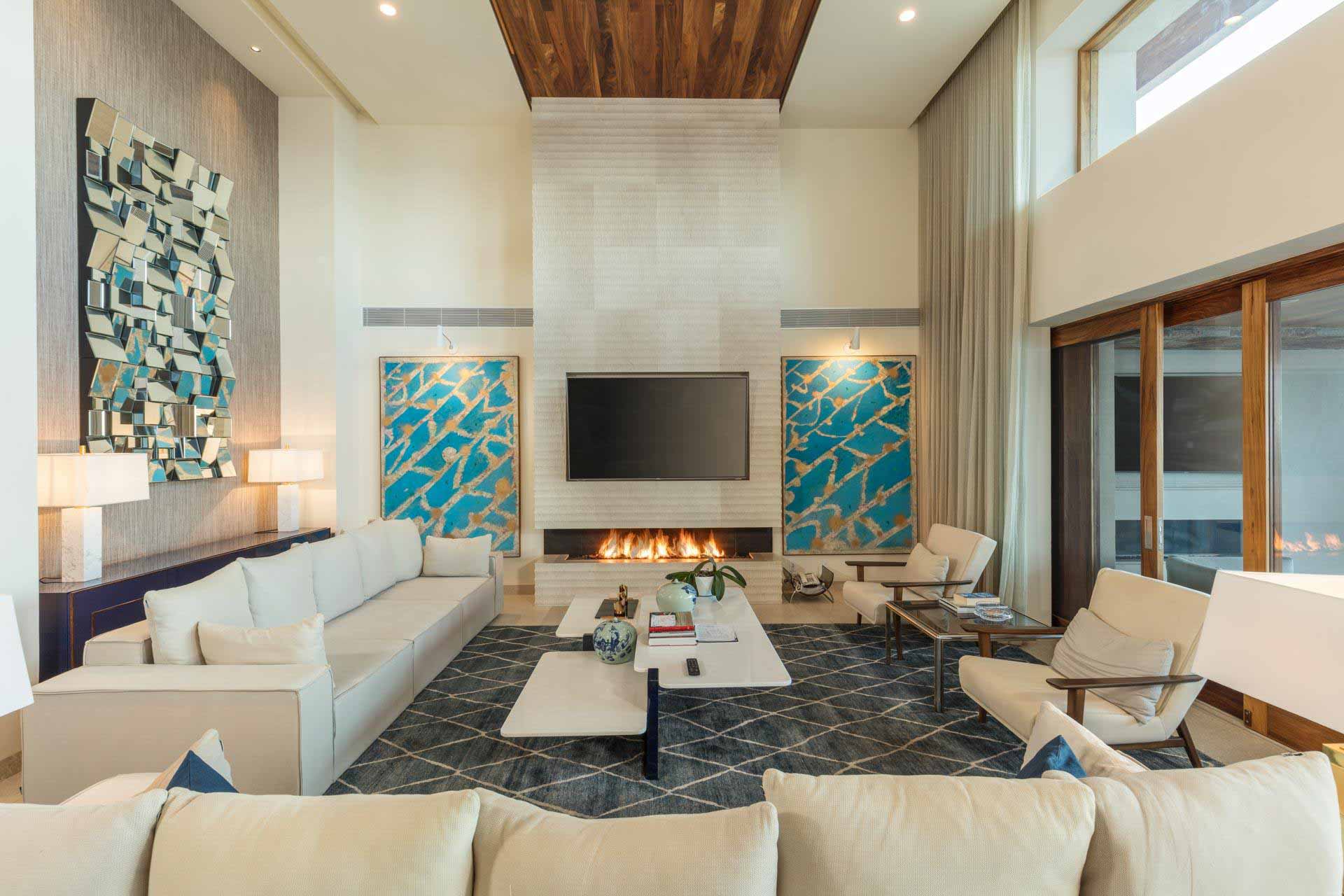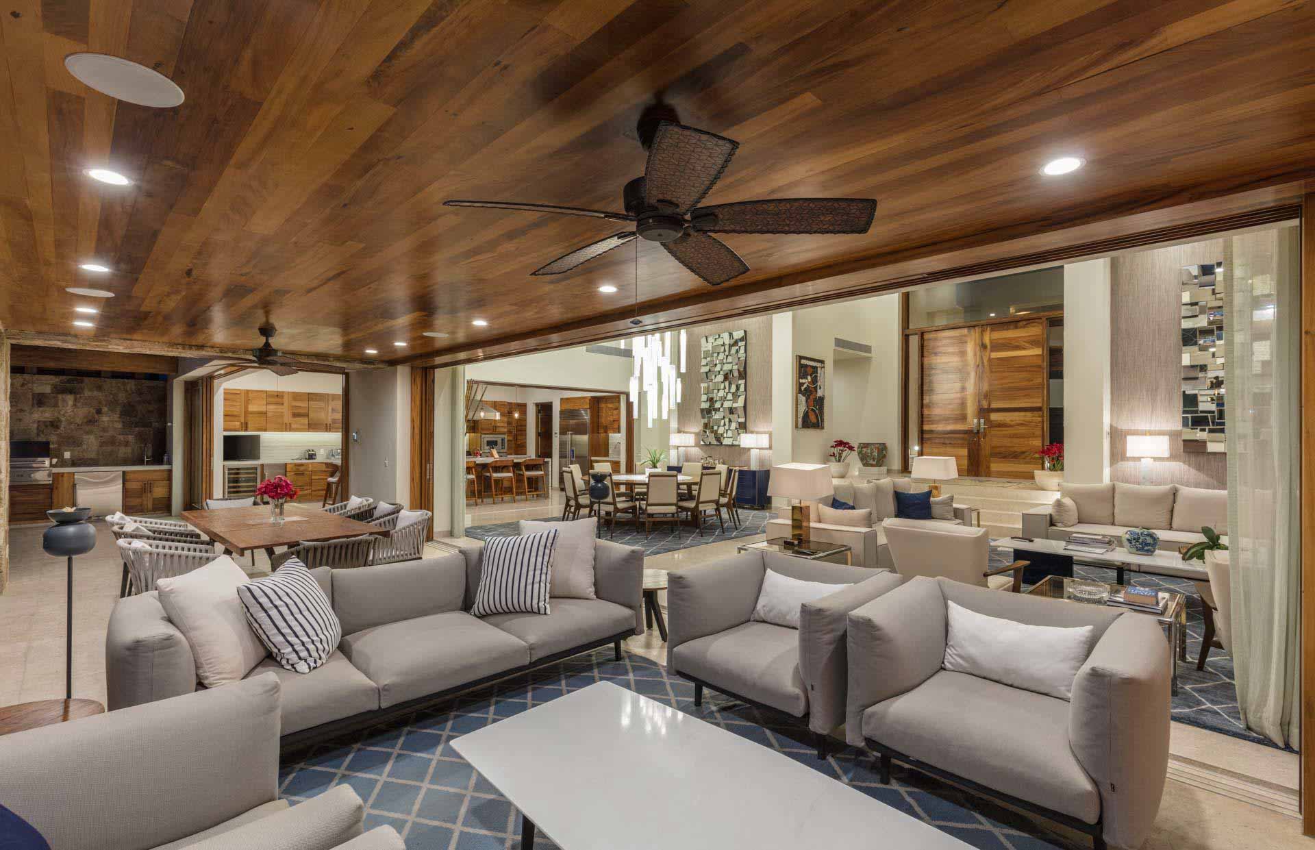Natural materials, soft textures, and warm finishes create a relaxed atmosphere throughout the residence. Interiors flow seamlessly toward outdoor areas, blurring the line between inside and outside and reinforcing a sense of continuity.